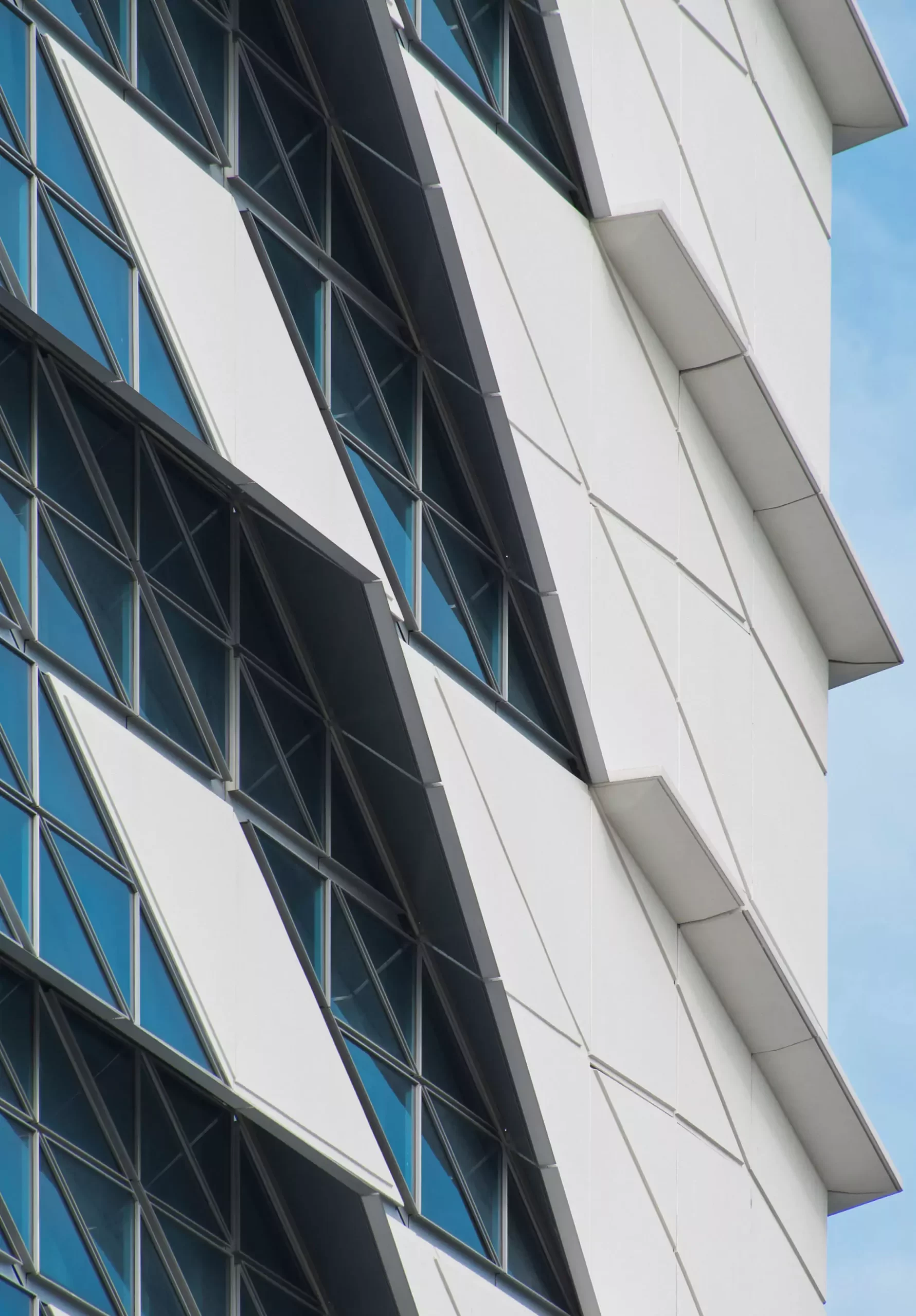 The facade design filters external heat and glare, providing comfort for the building occupants while maintaining a visual connection to the outside world. The North and South facades are designed as full glass with a lighter lattice to maximise diffused natural daylight. By utilising new computer techniques that balance and enhance daylight penetration as well as installing white GFRC and pre-cast panels, the tower’s single layer skin provides protection from solar heat gain.