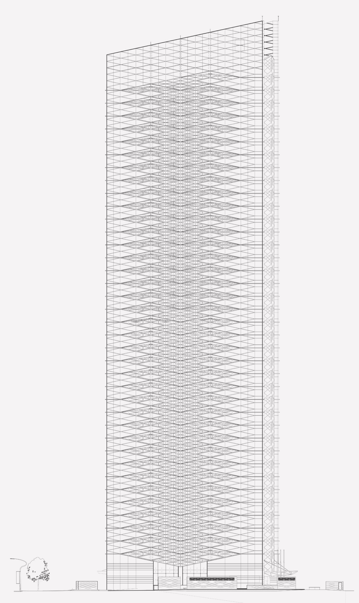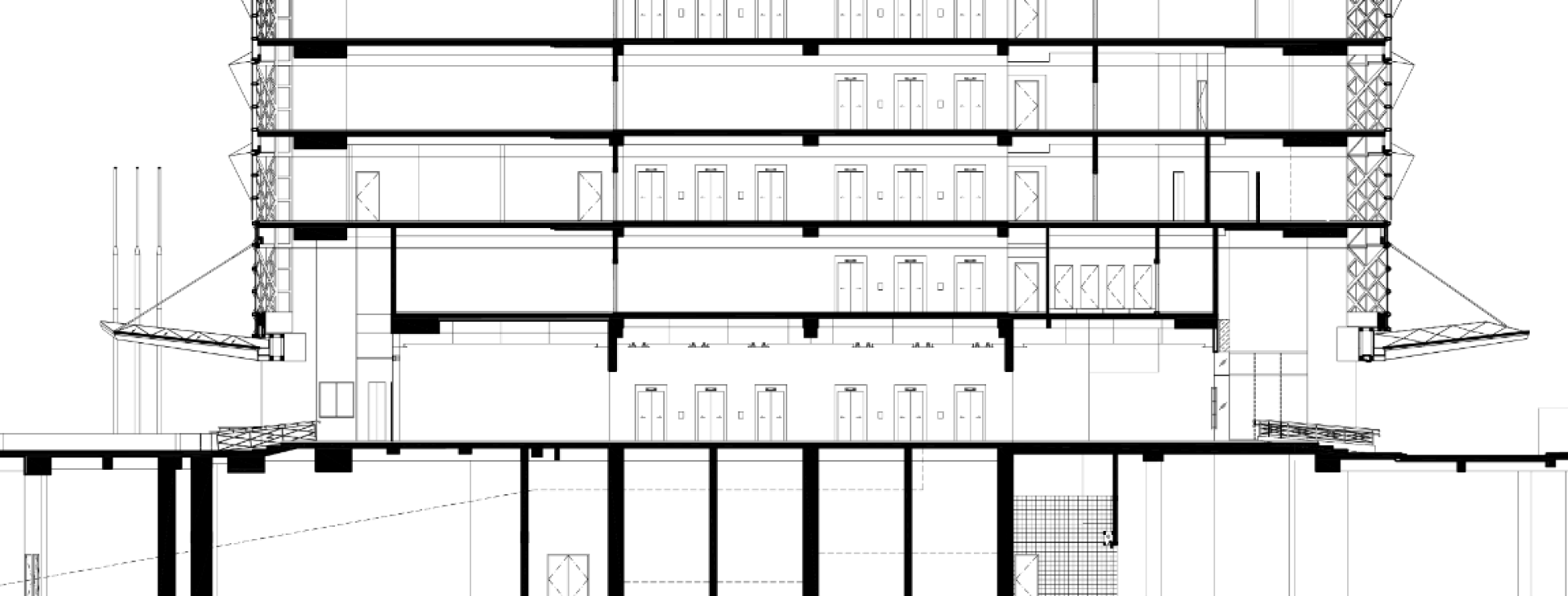 The ground floor is naturally ventilated, left open on the north and south sides to optimise permeability from the boulevard and the public spaces outside, and to free the floor for pedestrian and semi-public activities.